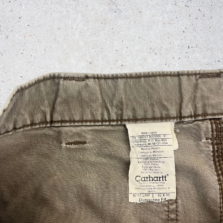 Brand: Carhartt Item: Carpenter Pants Colour: Olive Brown Size: 32 x 30 (Dungaree Fit) Style:Classic vintage carpenter pants featuring utility pockets and hammer loop, crafted from durable cotton canvas with a relaxed workwear fit. Condition:...