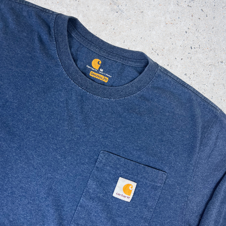 Brand: Carhartt Item: Long Sleeve Pocket T-Shirt Colour: Navy Blue Size: Medium (Original Fit) Style:Classic Carhartt long sleeve pocket t-shirt with signature logo patch, designed in the Original Fit for a boxy, slightly oversized silhouette....
