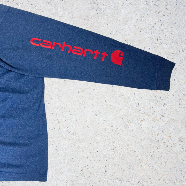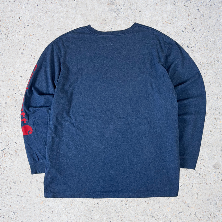 Brand: Carhartt Item: Long Sleeve Logo T-Shirt Colour: Navy Blue Size: XL (Original Fit) Style:Classic Carhartt long sleeve t-shirt featuring bold Carhartt logo down the sleeve, finished with ribbed cuffs and a relaxed original fit...