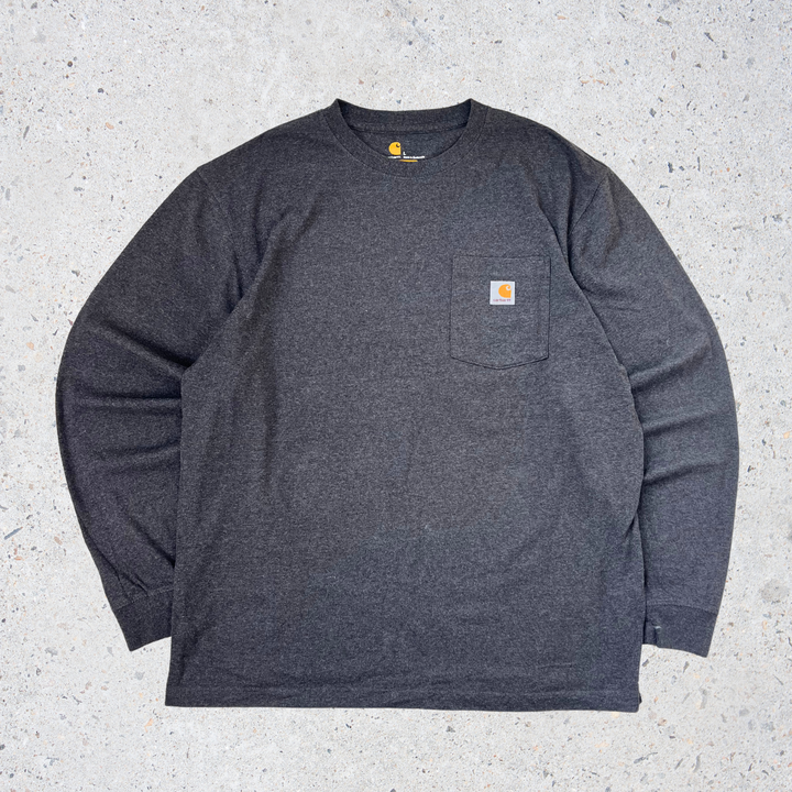 Brand: Carhartt Item: Long Sleeve Pocket T-Shirt Colour: Charcoal Grey Size: XL (Original Fit) Style:Classic Carhartt long sleeve pocket t-shirt with signature logo patch, designed with an original fit for durable everyday wear. Condition: Good...