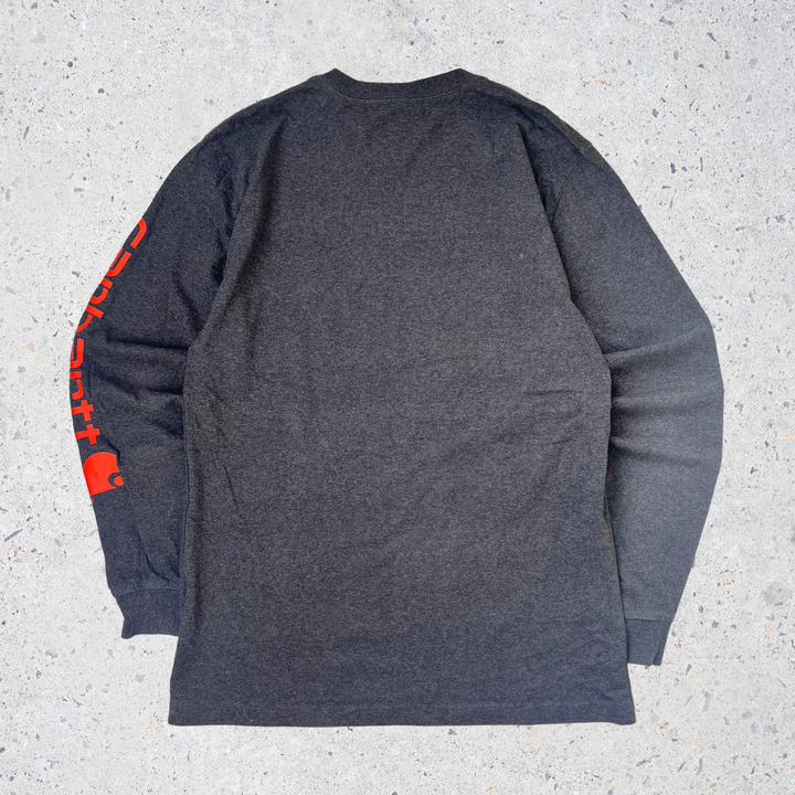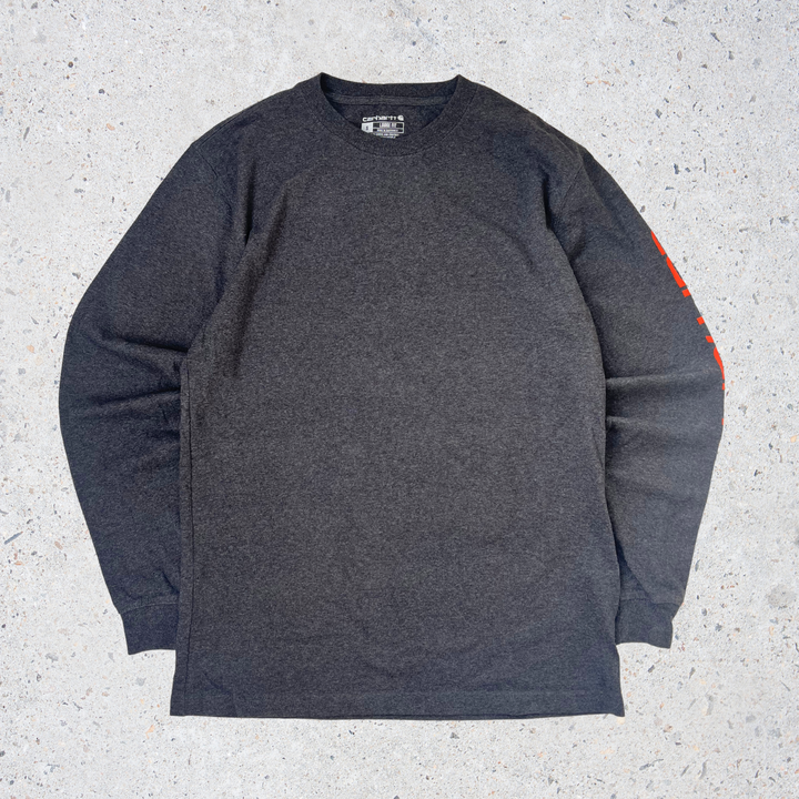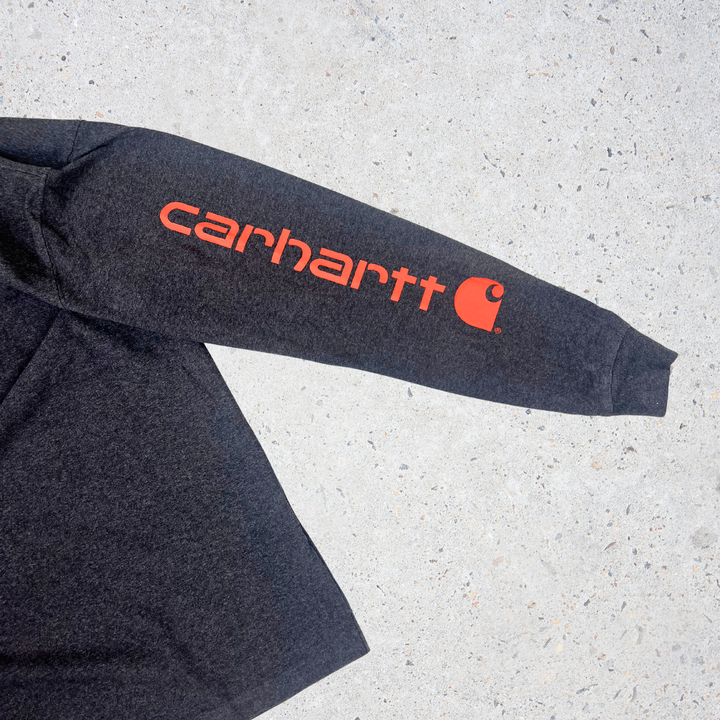Classic Carhartt long sleeve with bold sleeve logo print, designed with a loose fit for casual everyday wear.