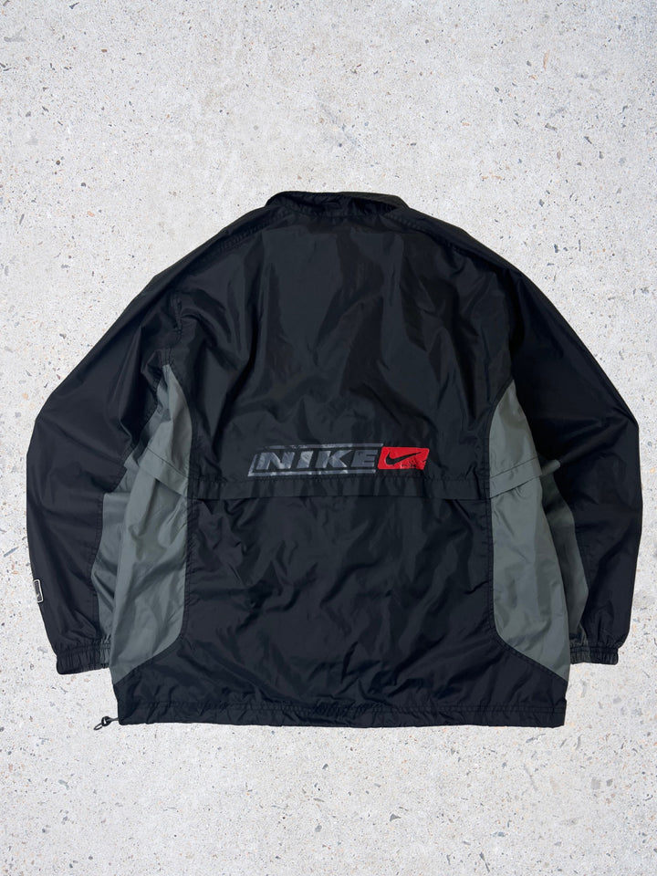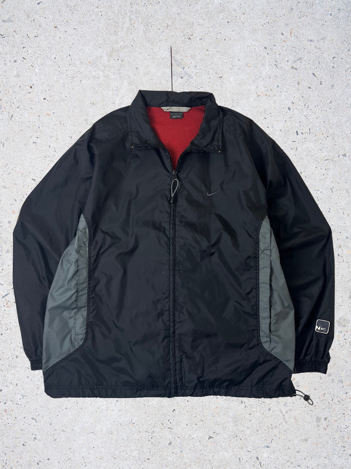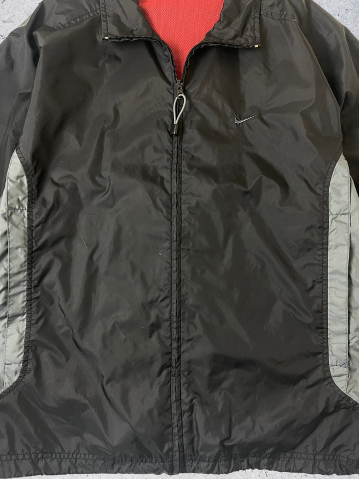 Brand: Nike Item: Track Jacket / Windbreaker Colour: Black with Grey accents Size: Large (Boxy Fit) - Drawstring at Waistband so Adjustable Fit Era: Naughties 2000's Condition: Excellent Condition / Light signs of wear /...